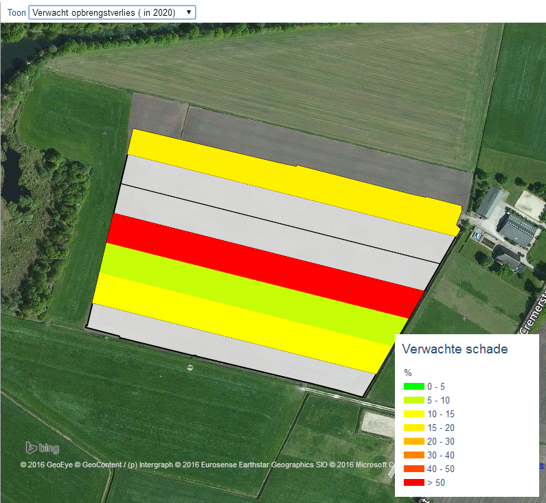 Met NemaDecide Geo kunt u ook bekijken wat het effect van uw keuzes is op opbrengstschade door AM in de consumptie- of zetmeelaardappelteelt (afbeelding 4).